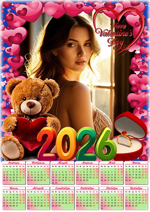 Календарь на 2026 год - С днем влюбленных PSD + 2 PNG + 2 JPG | 4961 x 3508 | 3508 x 2480 | 300 dpi | 83,11 MB Автор: sergey1971 |